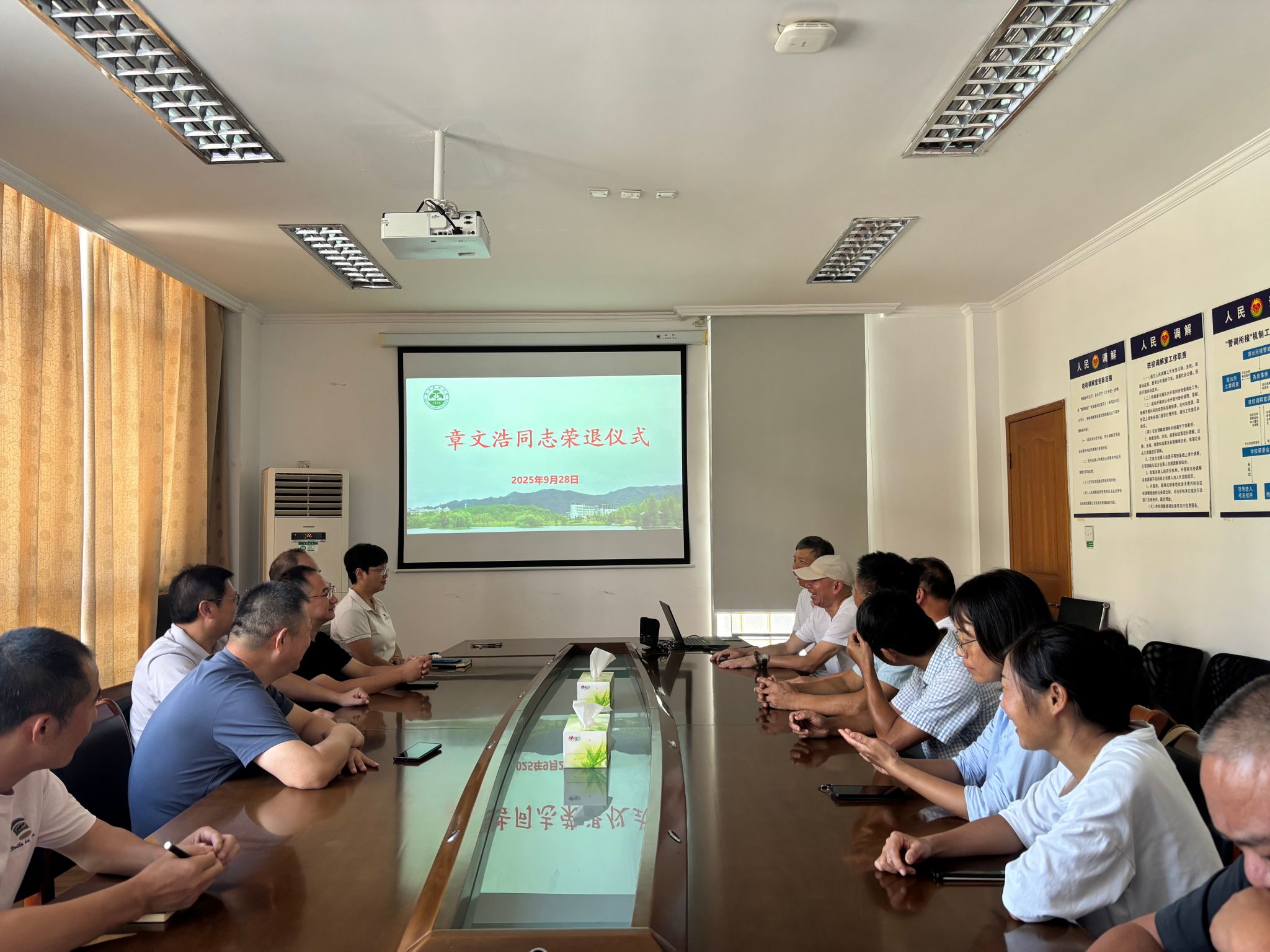 金秋时节、丹桂飘香,在国庆中秋佳节来临之前,保卫部为章文浩老师举办了光荣退休欢送仪式,欢送仪式由保卫部部长吴青林主持,部门全体正式员工参加。