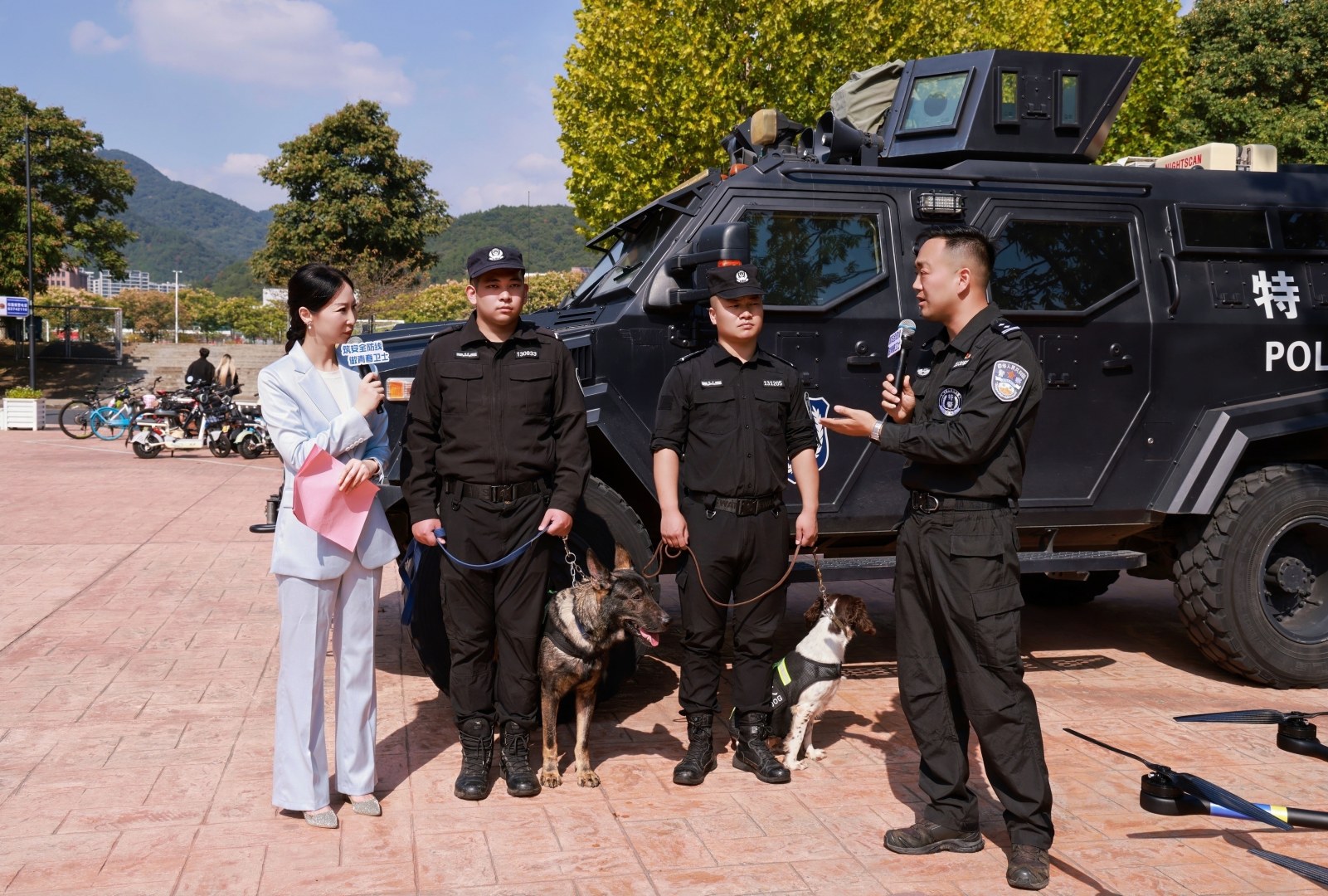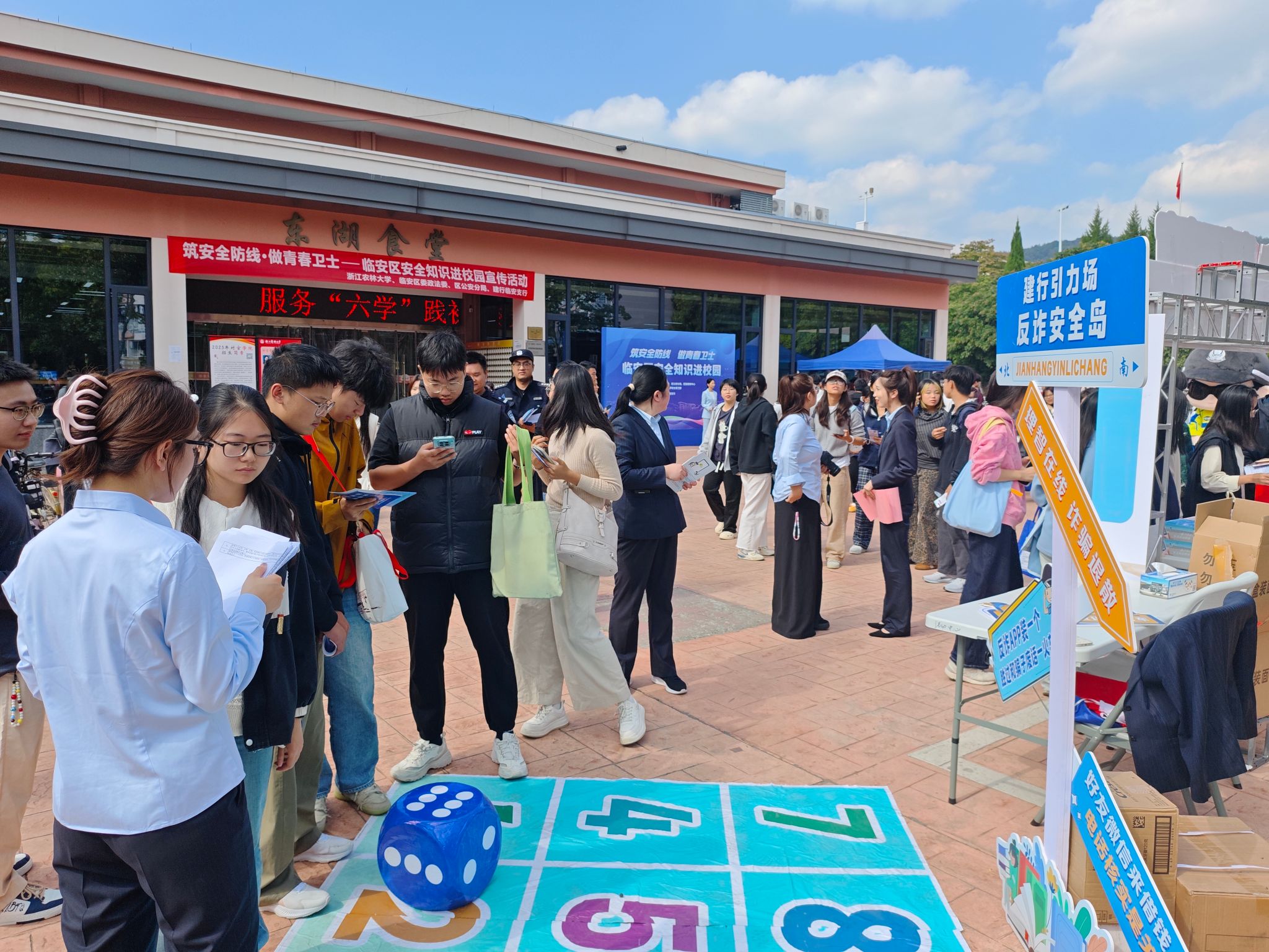 10月29日,由我校与临安区委政法委、区公安分局、区融合媒体中心主办的临安区安全知识进校园宣传活动在东湖食堂东广场举行,来自各学院的近千名师生参与活动。